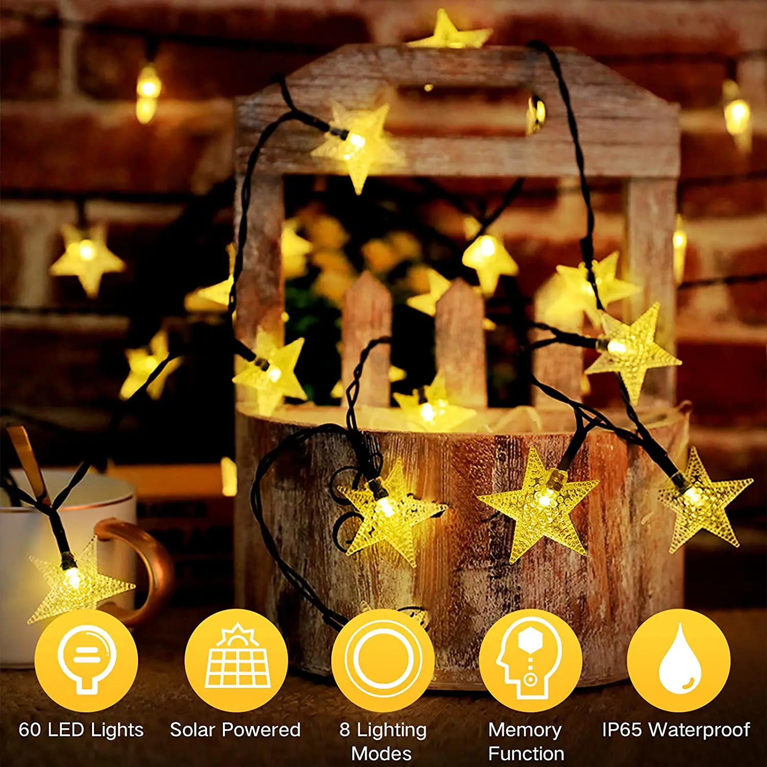 Светодиодная уличная гирлянда на солнечной батарее, водонепроницаемые мерцающие сказочные огни в виде звезд, лампа на солнечной батарее для патио, садового декора, Рождественская гирлянда