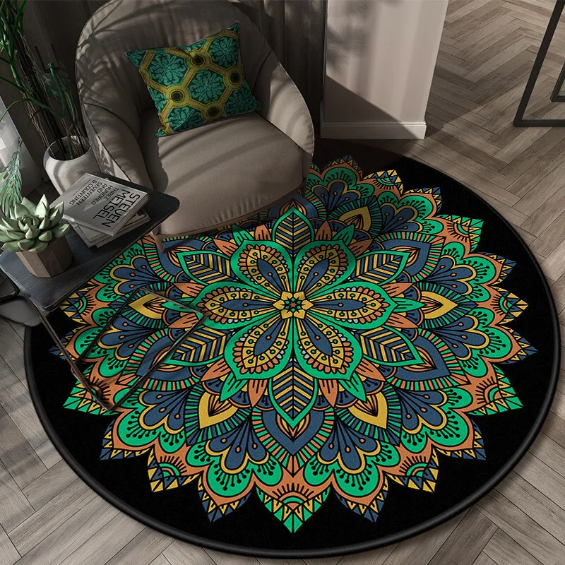 Круглый ковер с мандалой, ковер для спальни, гостиной, ковер в этни...
