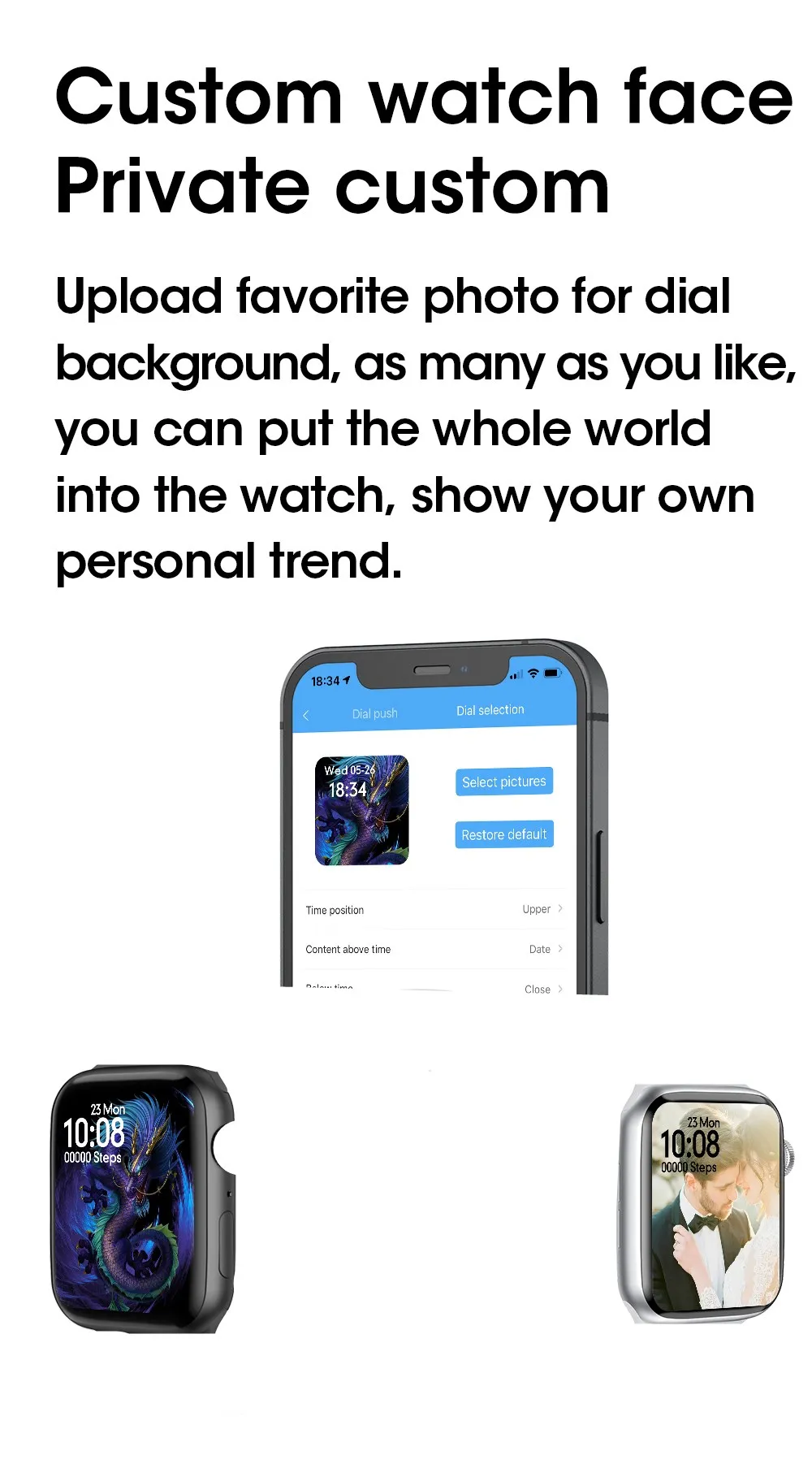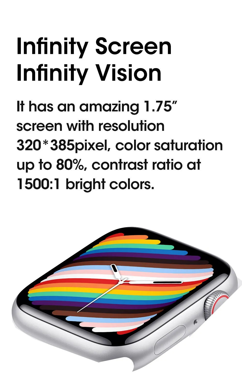Главный экран: 1,75 дюймов TFT Полный Круглый экран, разрешение 320*385