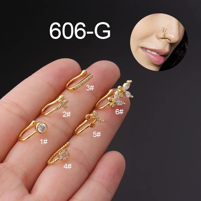 1 шт. циркониевое Золотое кольцо в форме бабочки для носа поддельны...