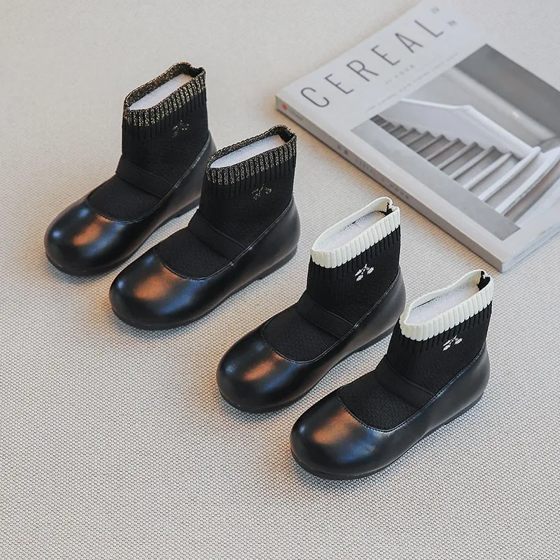 Туфли-носки детские кожаные с круглым носком, на плоской подошве, размеры 23-34