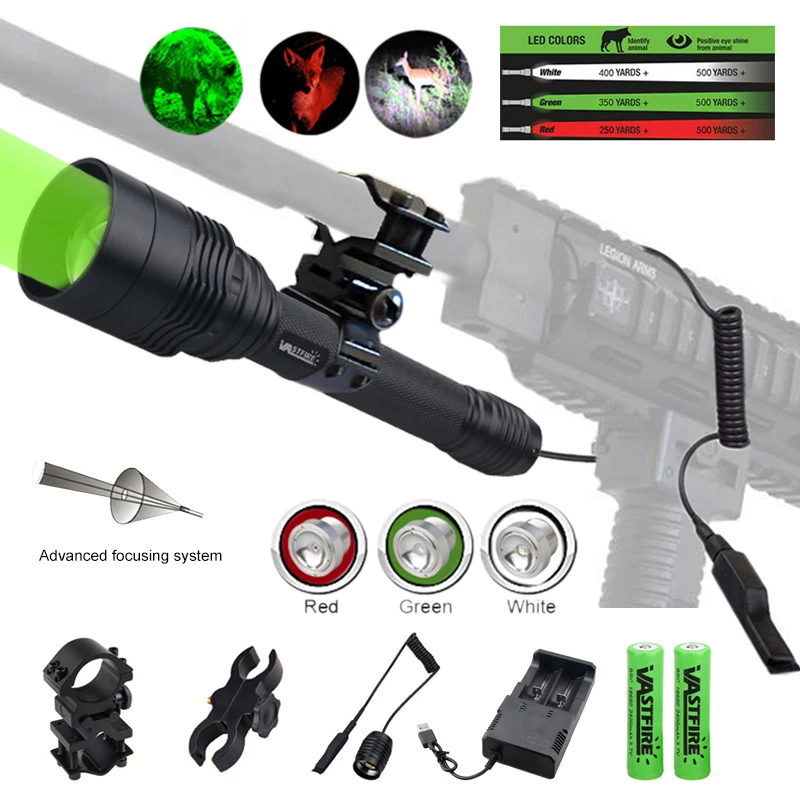Тактический масштабируемый охотничий фонарь 3 в 1, зеленыйкрасныйбелый светильник, фонарь 500 ярдов с креплением для прицела ружья