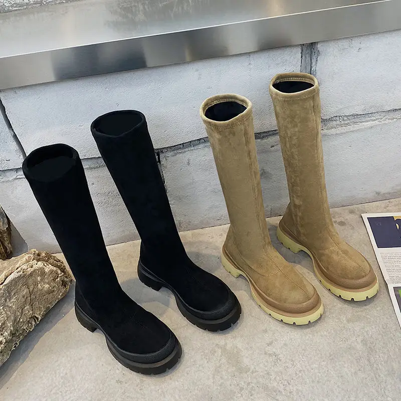 Женские высокие сапоги на плоской подошве, теплые зимние сапоги до колена, Размеры 35-40, 2022
