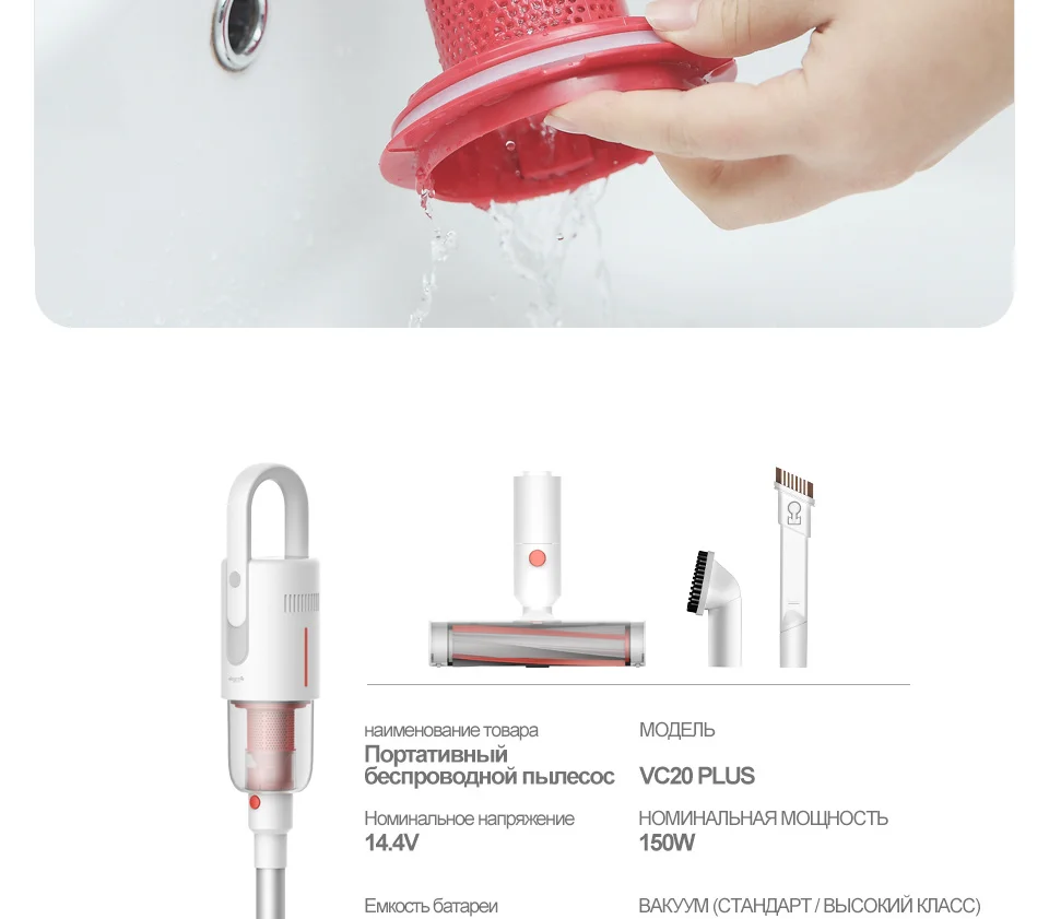 Пылесос выиграли в халяве. Приехал быстро, на 3 день, с гарантийным талоном и инструкцией на 3 яз., включая русский. Выглядит достойно, красивый, компактный, собирается сразу. Работает тихо, очень. Был заряжен. Итог: супер! Легкий, работает мягко. Мощность небольшая, но убрал ковер лучше, чем его более мощный собрат. Ковер ранее чистил собратом – вот что собрал этот аппарат после того! Дополнительные насадки удобные. Квартиру в 60 кв. убрали за 20 мин., включая ковер с высоким ворсом. Заряда хватило и пока пылесос не сел. У него 2 мощности, мы работали на первой. Чистится он быстро, волосы не путаются, все собирается в контейнер, который вытряхивается. Внутри фильтр – он легко моется, как и сам контейнер. В общем, своих денег стоит, отличный электровеник с функцией сбора именно мелкой пыли. Он очистит все поверхности, включая шторы и жалюзи, идеально уберет ковер (особенно не сильно ворсистый). Рекомендую к покупке, очень рады выигрышу!