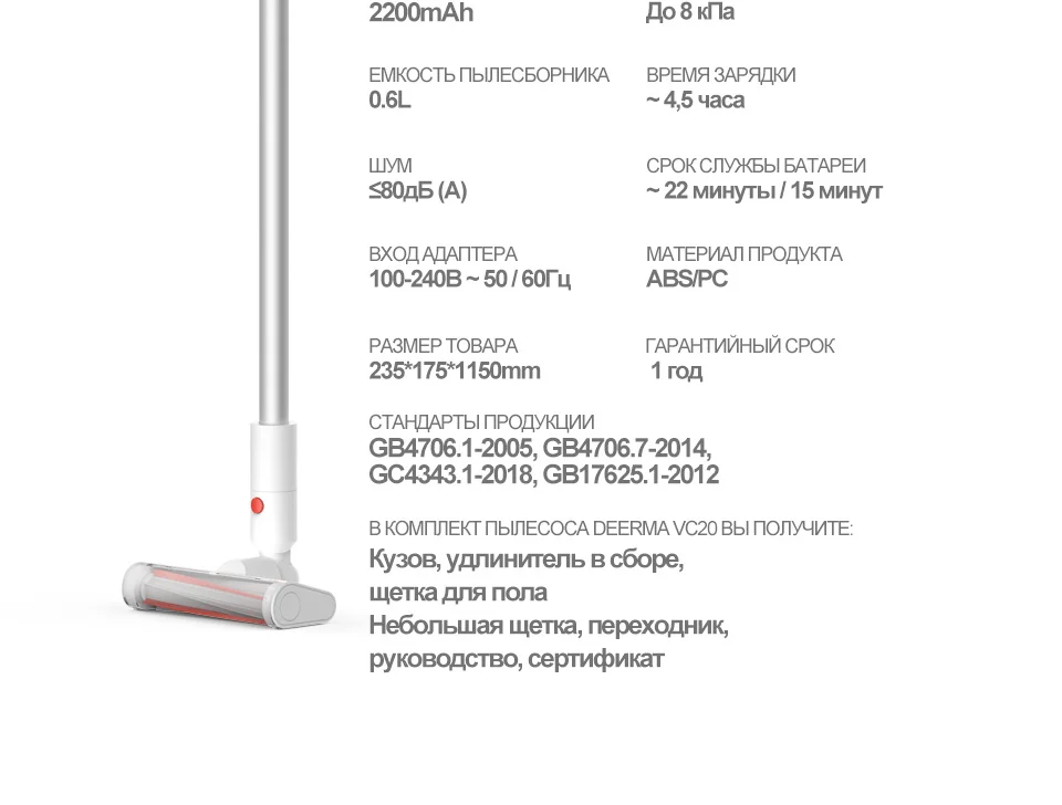 Deerma VC20 PLUS Вертикальный ручной беспроводной пылесос, всасывание 5500Pa, для дома и автомобиля