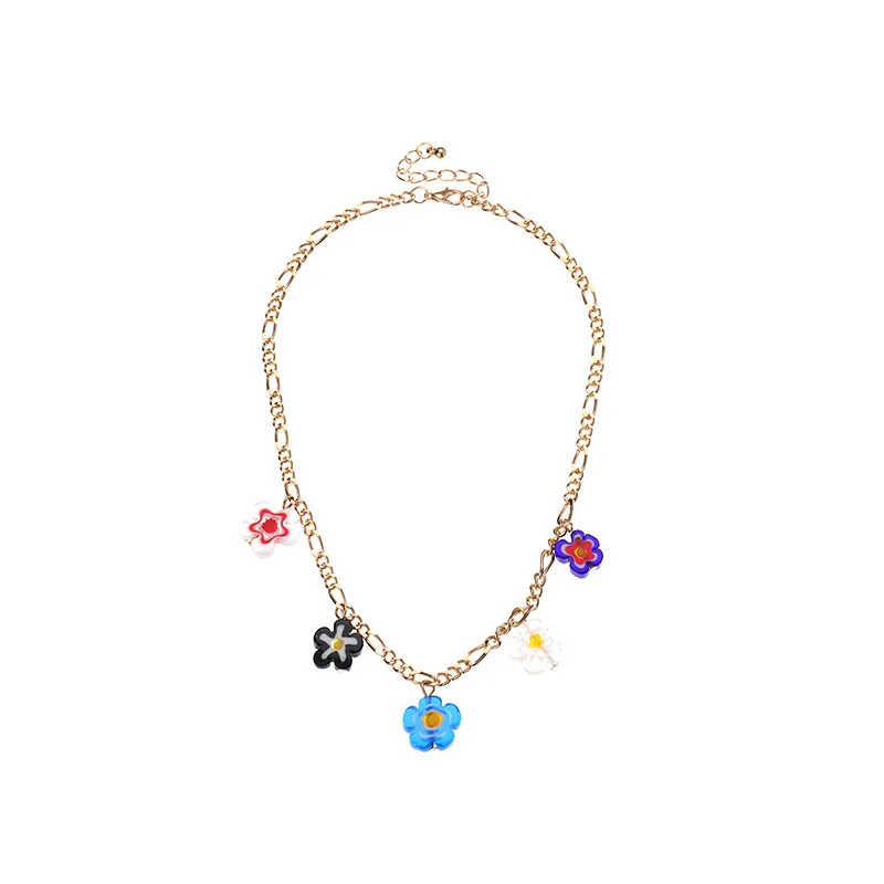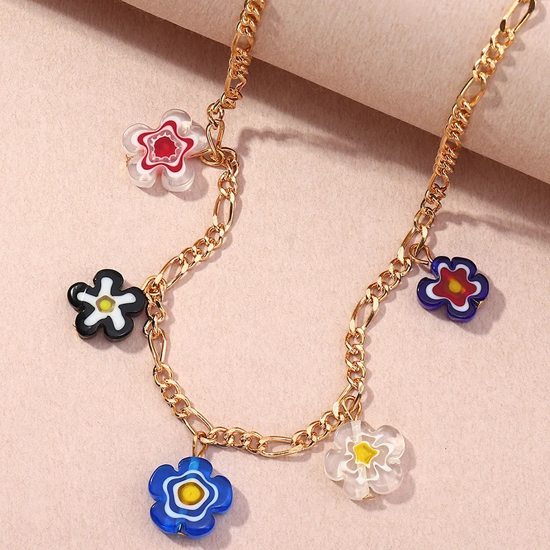 Модное ожерелье с цветком, романтичная цепочка с лазурным камнем, цветной цветочный кулон, ожерелья с подвесками, ювелирные изделия для девочек