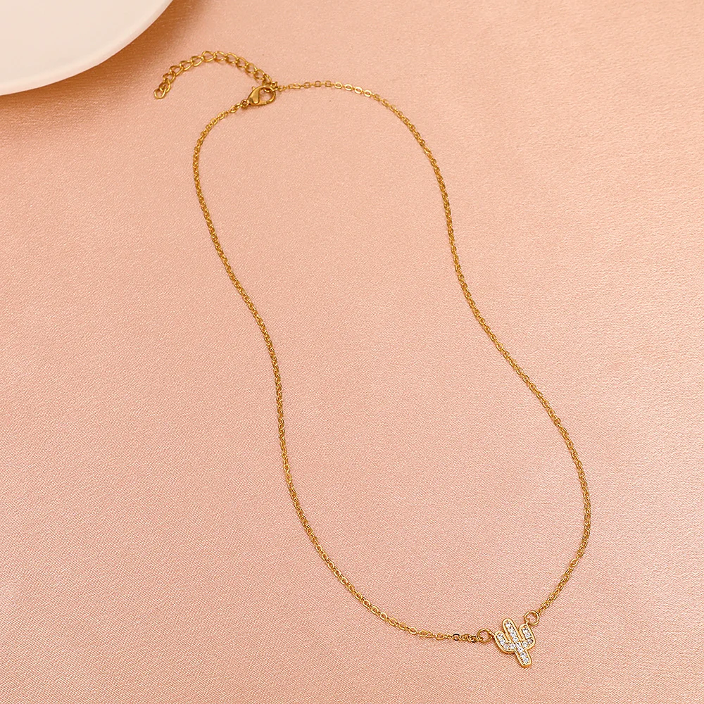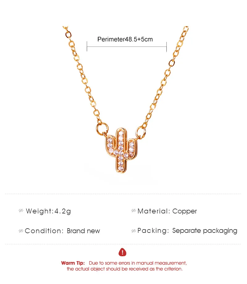 Новое модное ожерелье с кулоном в виде кактуса из циркония Ожерелья для женщин милая девушка изящная цепочка ювелирное изделие подарок