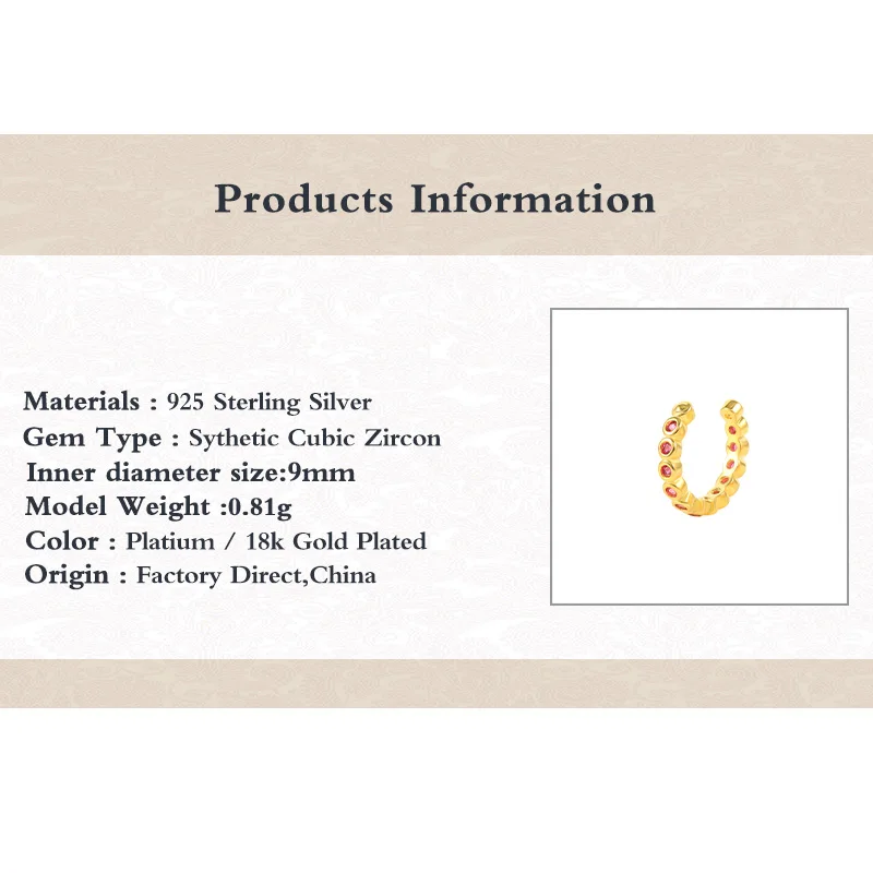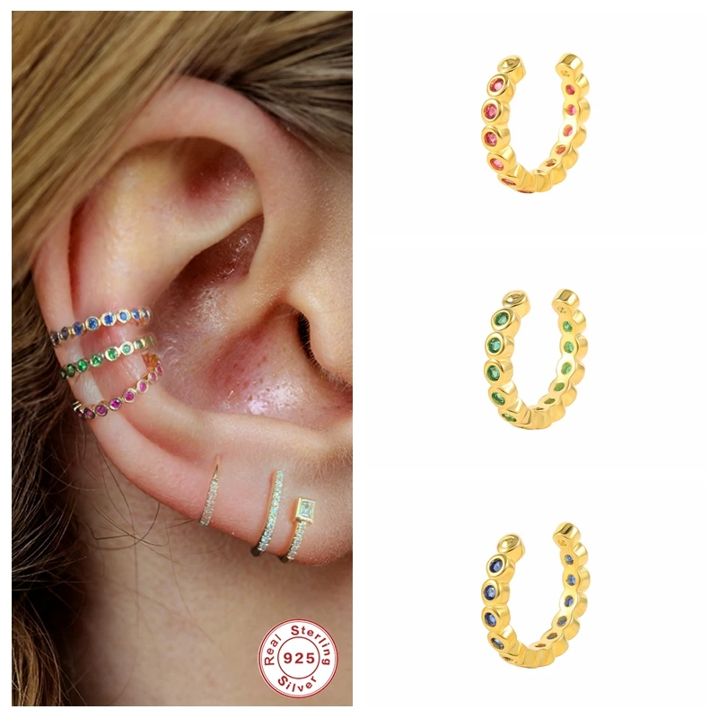 Женские серьги-Клипсы из стерлингового серебра 925 пробы с цветным цирконием в форме C, поддельные пирсинг, очаровательные украшения для свадьбы