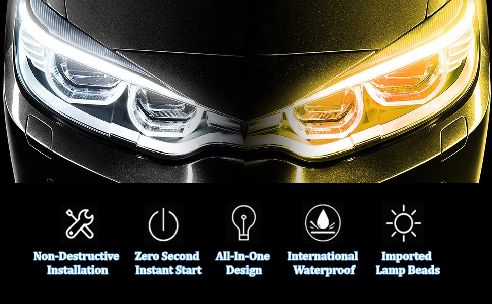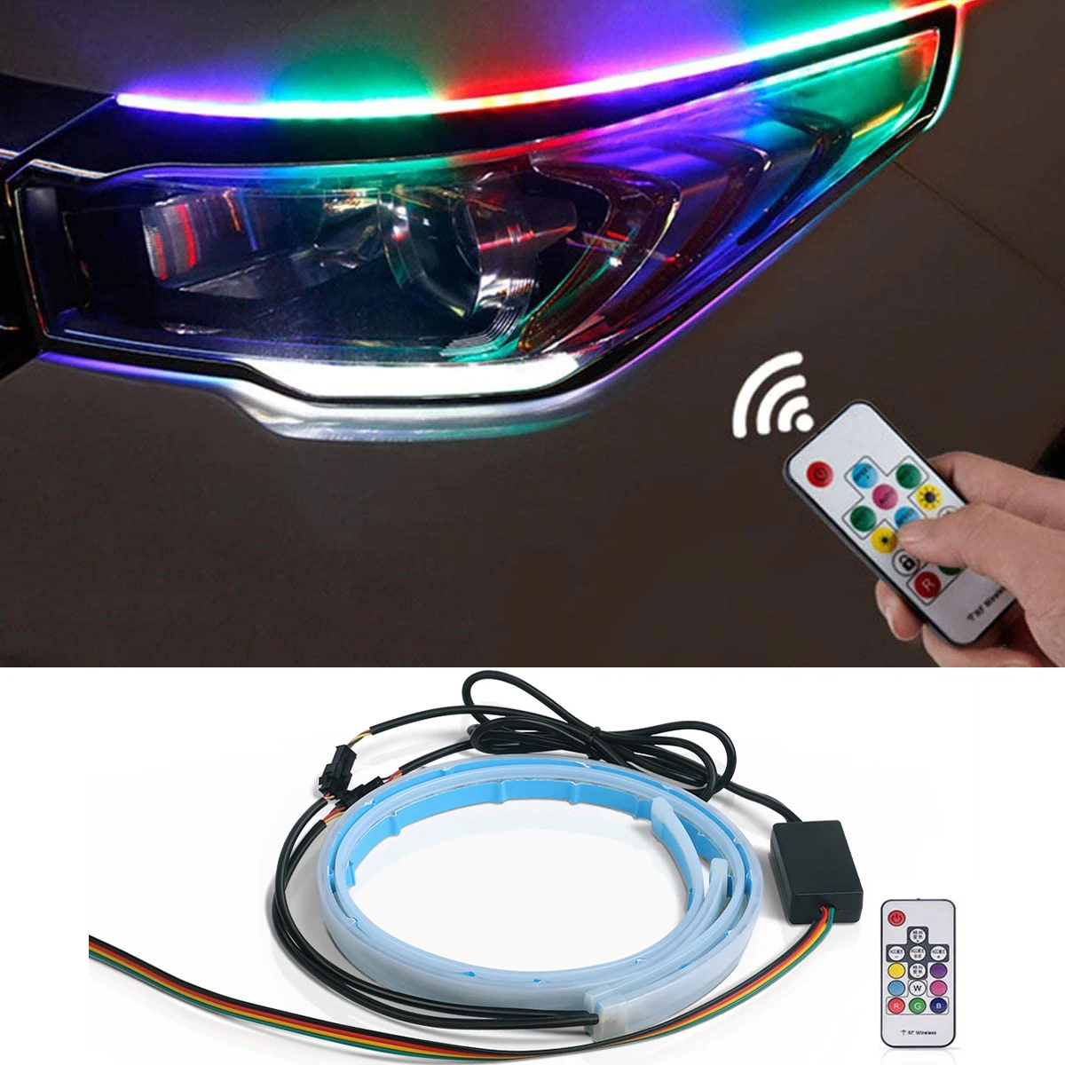 2 шт. Автомобиль RGB светодиодные полосы света дневные ходовые огни последовательный желтый сигнал поворота фара ангельский глаз неоновые полосы DRL гибкая трубка 12 В для внешних деталей автомобиля фара деко