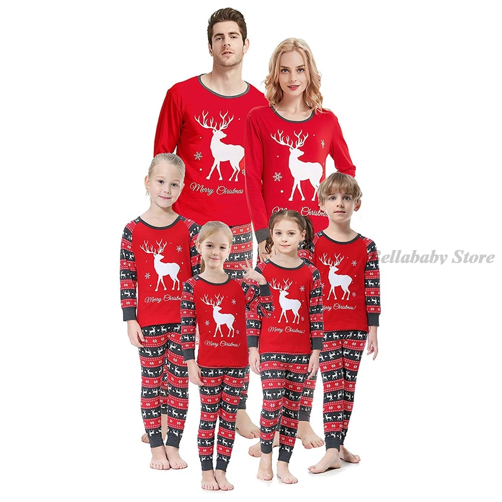 Рождественский комплект одинаковых пижам для всей семьи, комплект из топа с длинными рукавами и штанов