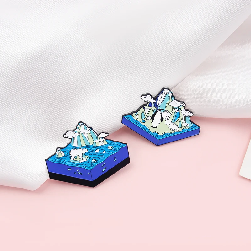 Эмалированная брошь в стиле панк с изображением ледника и антаркта
