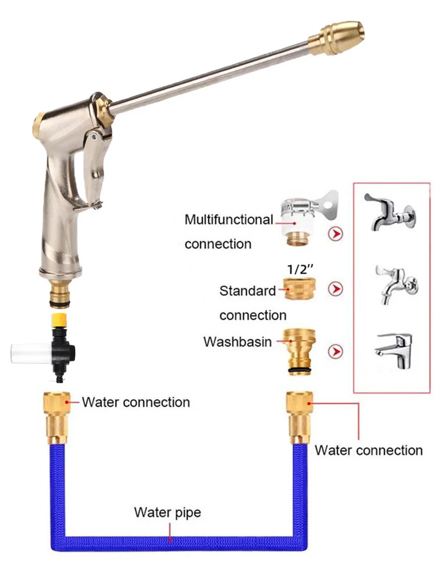 Пистолет для мойки автомобиля, регулируемый водяной пистолет высокого давления, мойка для домашнего сада, Металлическая насадка для полива, инструмент для уборки домашних животных и душа