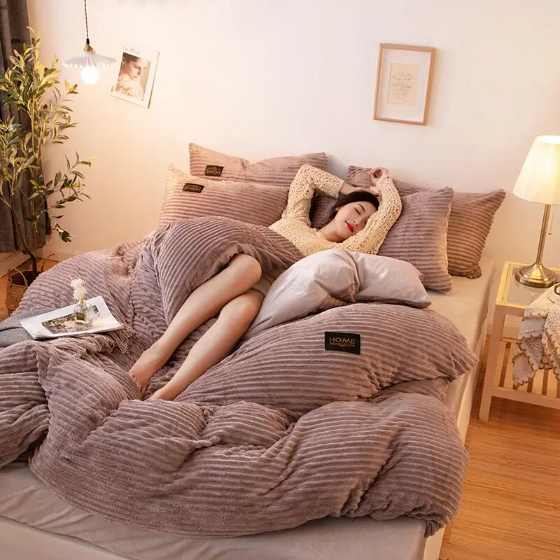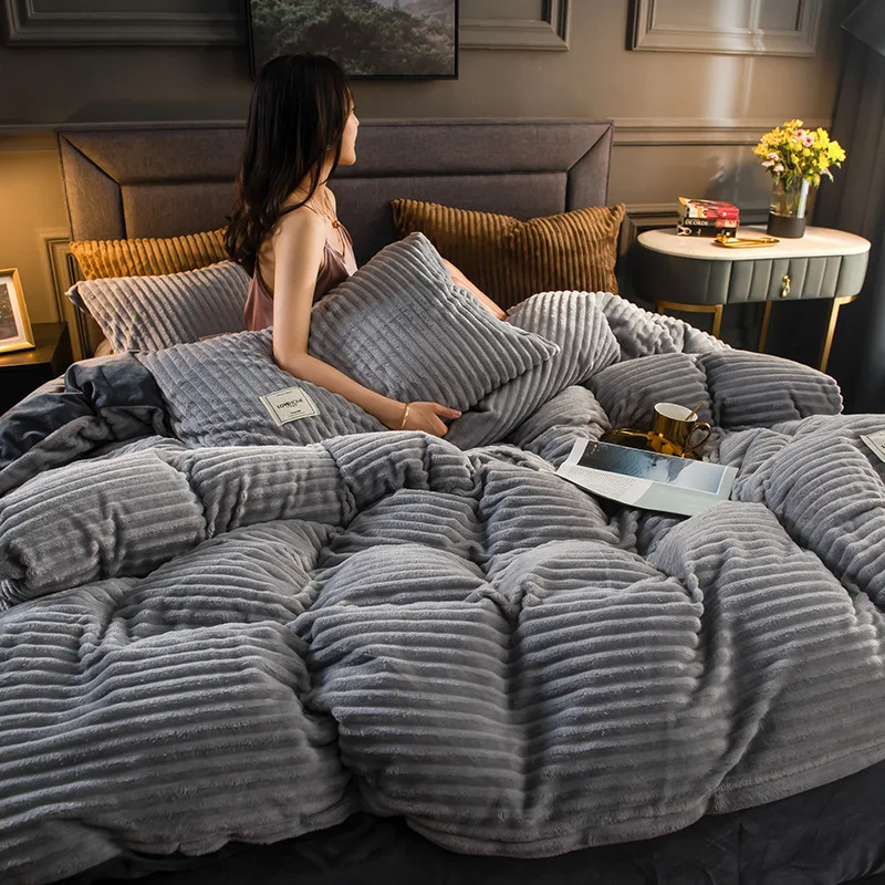 Комплект постельного белья из плотной фланели, однотонный, теплый, коралловый, бархатное лоскутное одеяло, современный, ультра мягкий, роскошное покрывало