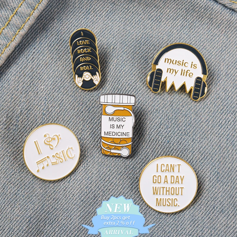 Эмалированные булавки Музыка-моя жизнь, гарнитура в стиле рок-н-рол...