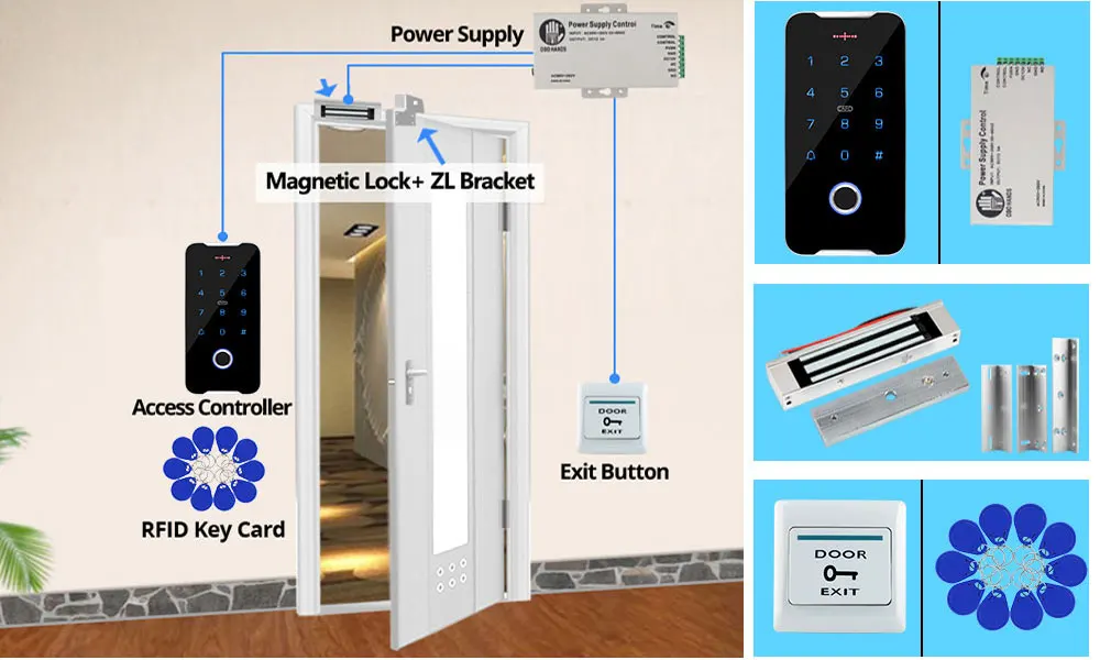 IP68 Водонепроницаемый телефон, набор, биометрическая RFID Клавиатура + блок питания + 180 кг электрические магнитные замки