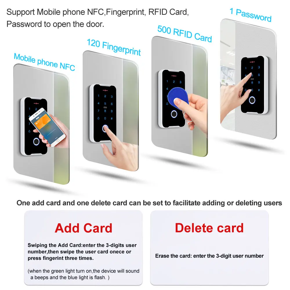 Поддержка 120 отпечатков пальцев, 500 карт, 1 открытый пароль, более безопасный!