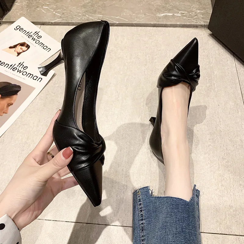 Женские осенние туфли на высоком каблуке, новинка 2021, женская обувь с французским бантом, туфли-лодочки на шпильке с острым носком