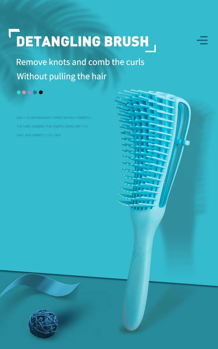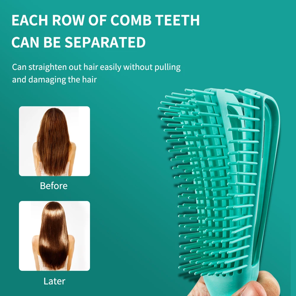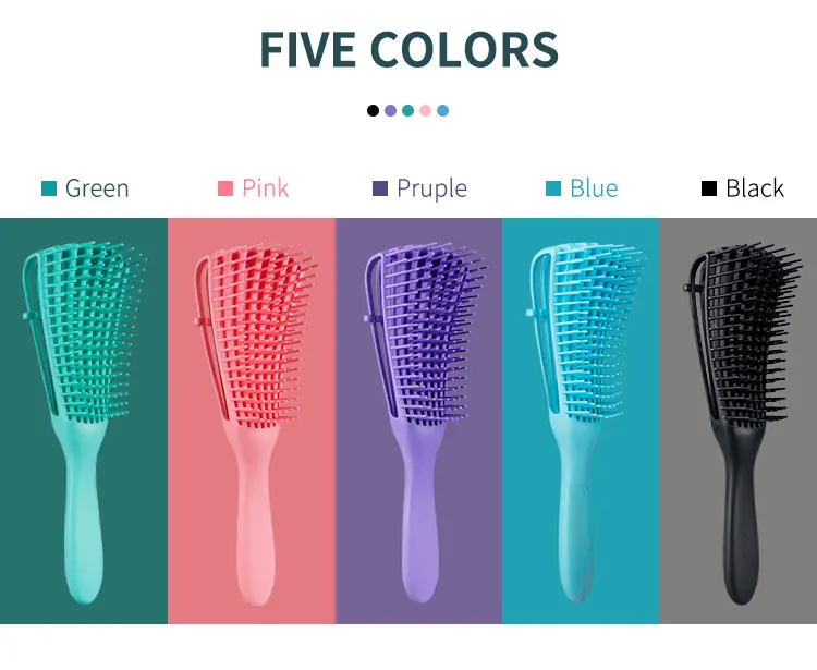 Круглые зубцы для волос могут массировать вашу голову, что способствует росту волос. 8-коготь расческа Зубцов, отскок, удобный для кожи головы. Гребень изогнутой формы подходит для кожи головы, чтобы сделать более комфортным. Полый гребень, более гибкий для быстрой сушки волос и укладки. Нескользящая конструкция позволяет удобно держать.