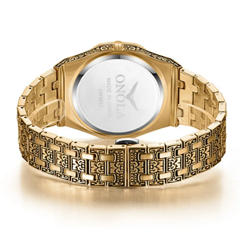 Часы наручные ONOLA Мужские кварцевые, модные брендовые роскошные золотистые из нержавеющей стали в стиле ретро