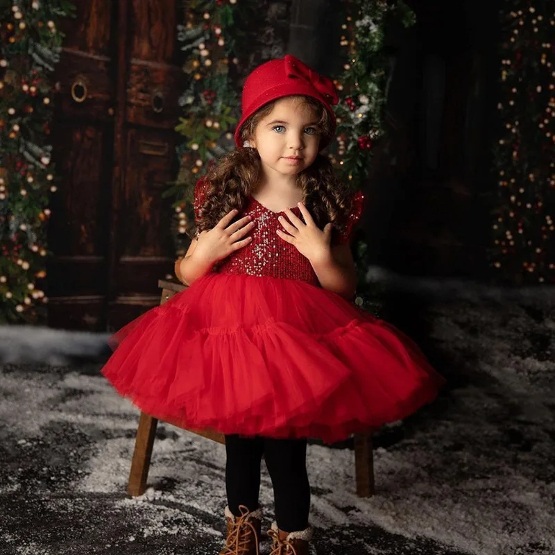 Рождество 2022, новогоднее платье для девочек 0-5 лет, праздничное кружевное газовое платье с вышивкой и блестками, одежда для художественной фотосъемки