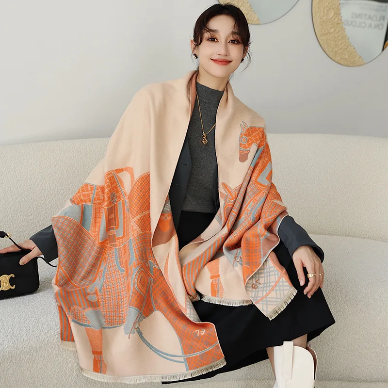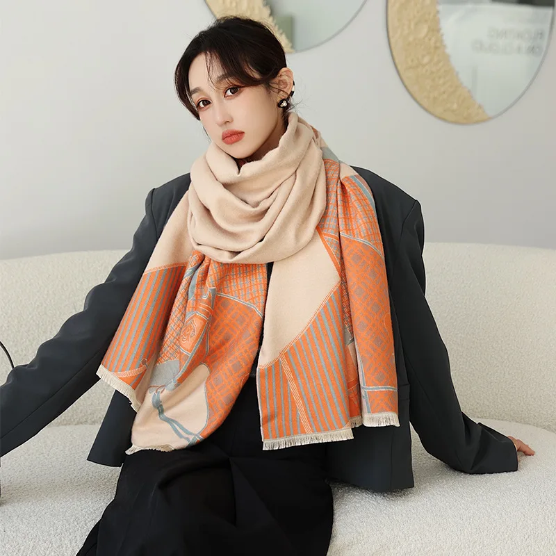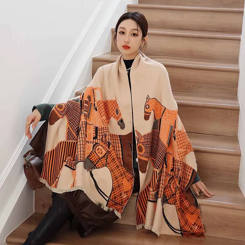 Женский кашемировый шарф, зимний теплый пашминовый шарф, 2021