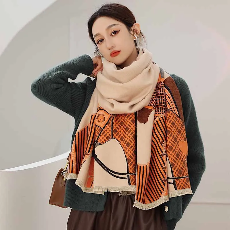 Шарф кашемировый женский, зимний, плотный, с принтом, 2021
