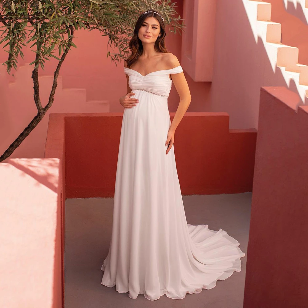 Шикарное шифоновое пляжное свадебное платье UZN цвета слоновой кости с открытыми плечами и V-образным вырезом, с высокой талией, ТРАПЕЦИЕВИДНОЕ свадебное платье для беременных женщин, платья невесты на заказ