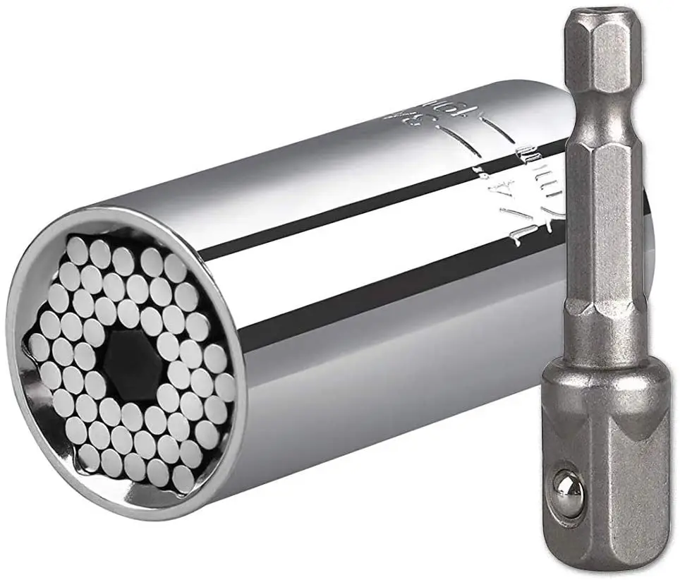 Универсальная головка динамометрического ключа с торцевой втулкой 7-19 мм, дрель храповая втулка, гаечный ключ Magic Grip, многофункциональные ручные инструментыОсобенности:1. 100% новый и высококачественный2. Можно разобрать гайки различной формы, винты, крючки, откидные винты, головки болтов и т. Д.3. Саморегулируется под тысячи креплений4. Полированная хромированная отделка5. Может использоваться в автомобильной промышленности, бытовом обслуживании, обрабатывающей промышленности, строительстве и других отраслях промышленности6. Продукт компактный и удобный для переноски. Съемные винты, вращающиеся крючки, разборка винта с плоской головкой. Удаление нестандартных винтов и удаление разбитые краны, затяжки ручек.7. Автоматическое стандартное и метрическое применение8. Адаптер для дрели в комплекте9. Профессиональный Универсальный торцевой ключХарактеристики:Материал: стальЦвет: серебристыйДиапазон использования: от 1/4 до 3/4 дюймов (7-19 мм) все характеристикиРазмер изделия: прибл. 53x25 мм