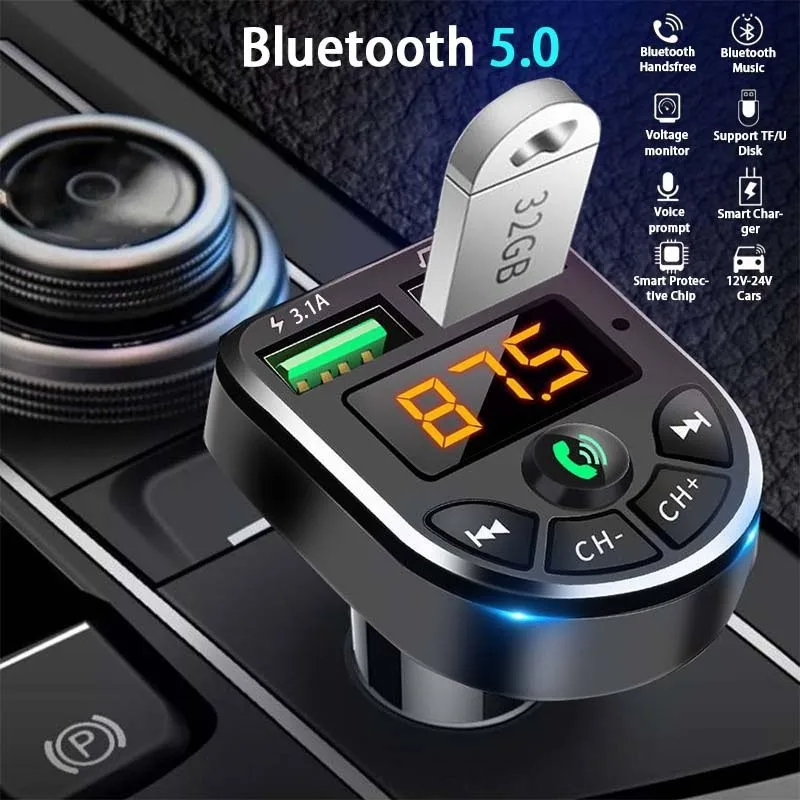 Беспроводной автомобильный FM-трансмиттер с Bluetooth 5,0 и mp3-плеером