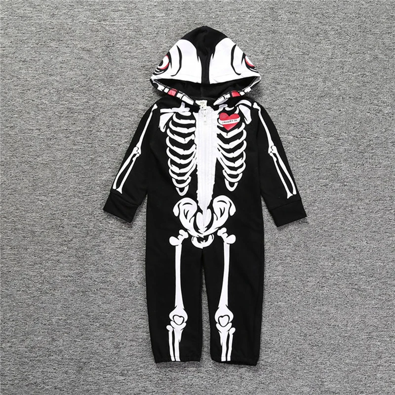 Товар: Детский комбинезон с длинными рукавами и рисунком черепа на весну и осень; Комбинезон на Хэллоуин с капюшоном
