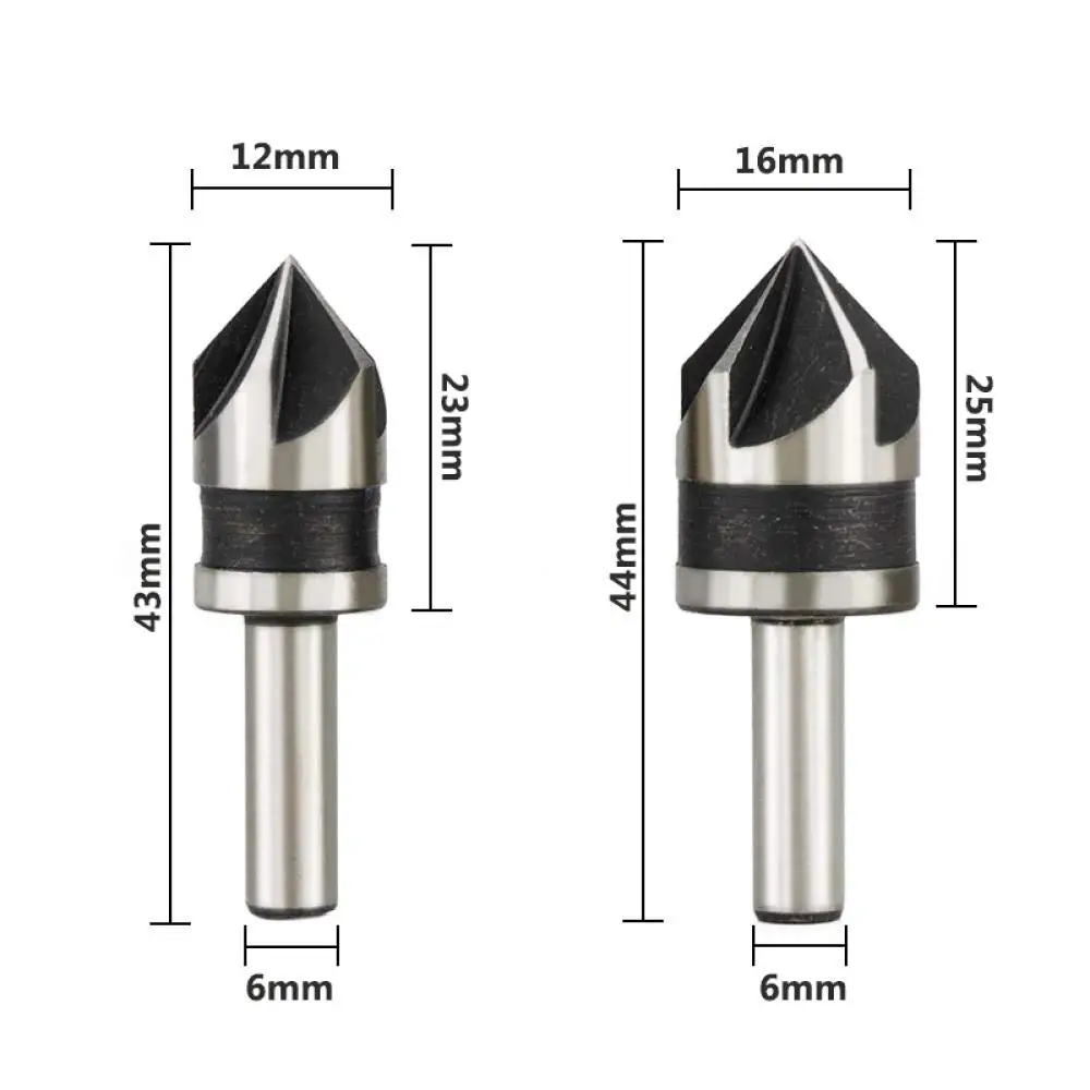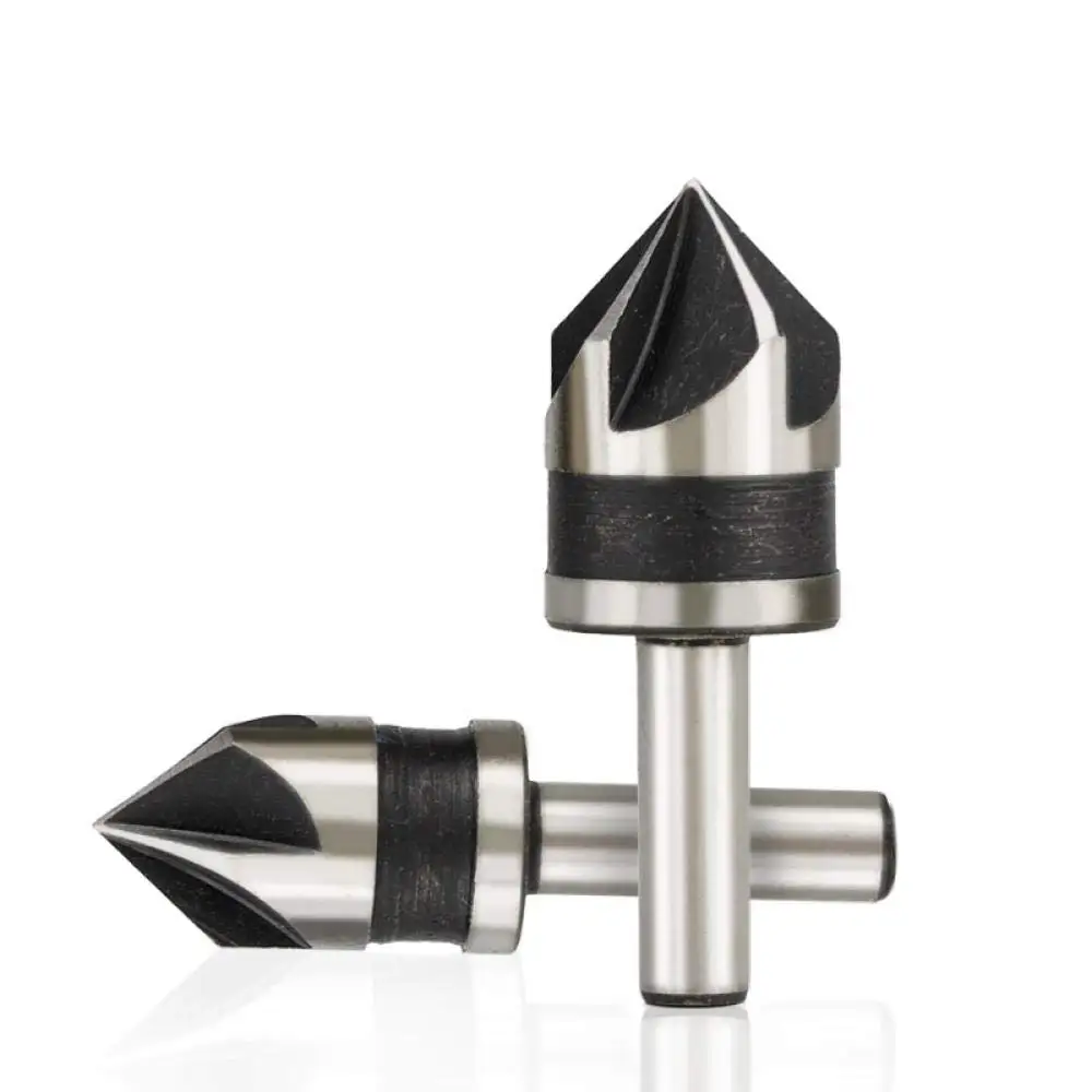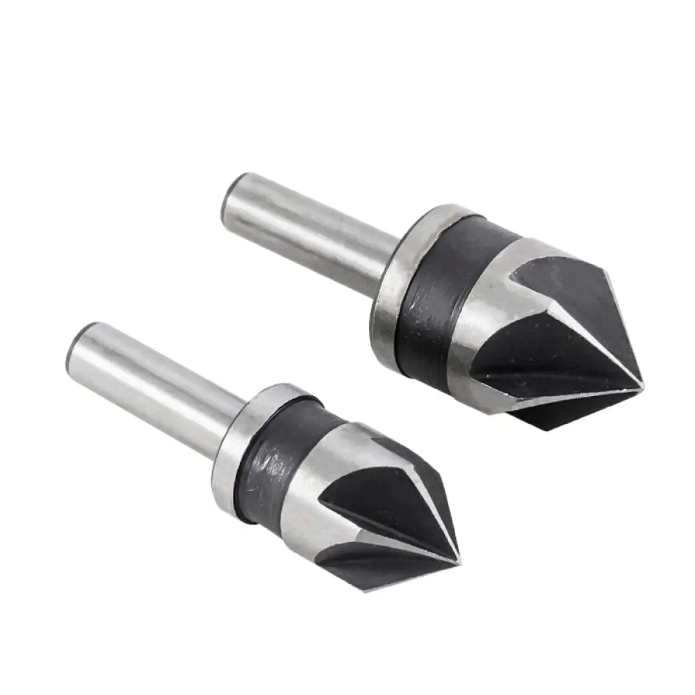Зенкер из быстрорежущей стали с 5 зубьями, 2 шт., для дерева, 82 градуса, фаска, сверло 12 дюйма, 58 дюйма, Круглый хвостовик, фаска, резак