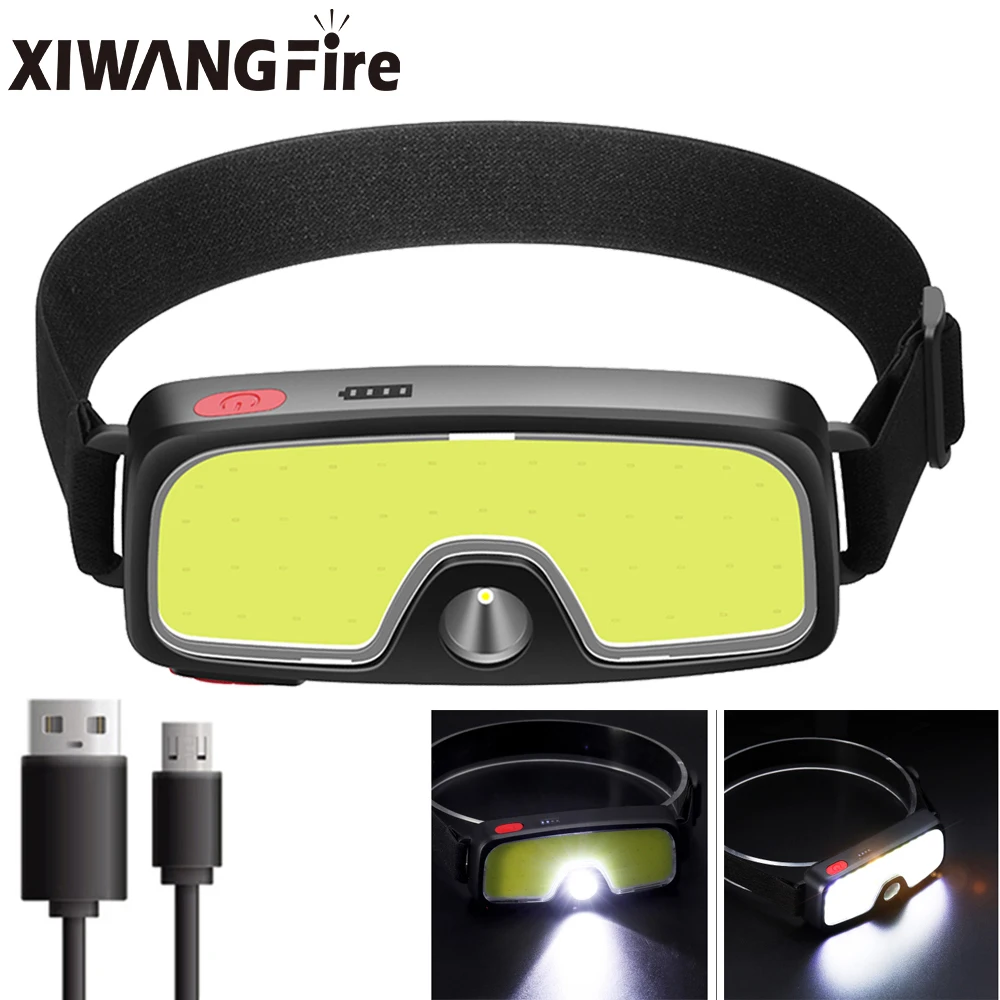 Светодиодный налобный фонарь с COB матрицей, портативный миниатсветильник ный фонарь со встроенным аккумулятором и зарядкой по USB, фонарь для кемпинга