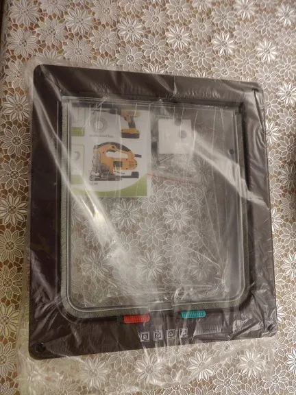 Доставлено в Волгоград за полмесяца. Упаковано без коробки в пакет-дутыш, комплект полный с шурупами, заглушками и инструкцией в картинках. На самой дверце плёнка только с одной стороны, поэтому другая сторона слегка поцарапана(( В качестве тренировки врезал в старую дверь. Кот, за 15 лет привыкший к открытым дверям, отказывается проходить в этот лаз, поэтому временно дверца снята - пусть привыкает. Товар понравился всем, правда котина пока это не понял))