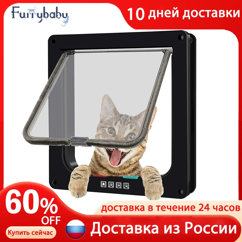 Умная 4-ходовая дверь для домашних животных, Блокировка безопасности, дверь из АБС-пластика с откидной крышкой для собак и кошек, двери, маленькие товары для домашних животных дверь для кошек откидная дверь для кота