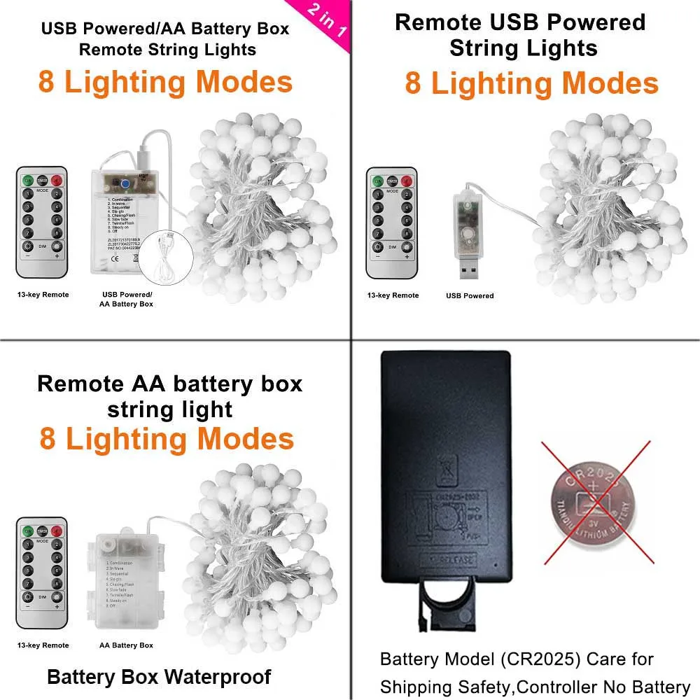 Гирлянда с круглыми шарами, светодиодная, 8 режимов, 5 м 10 м