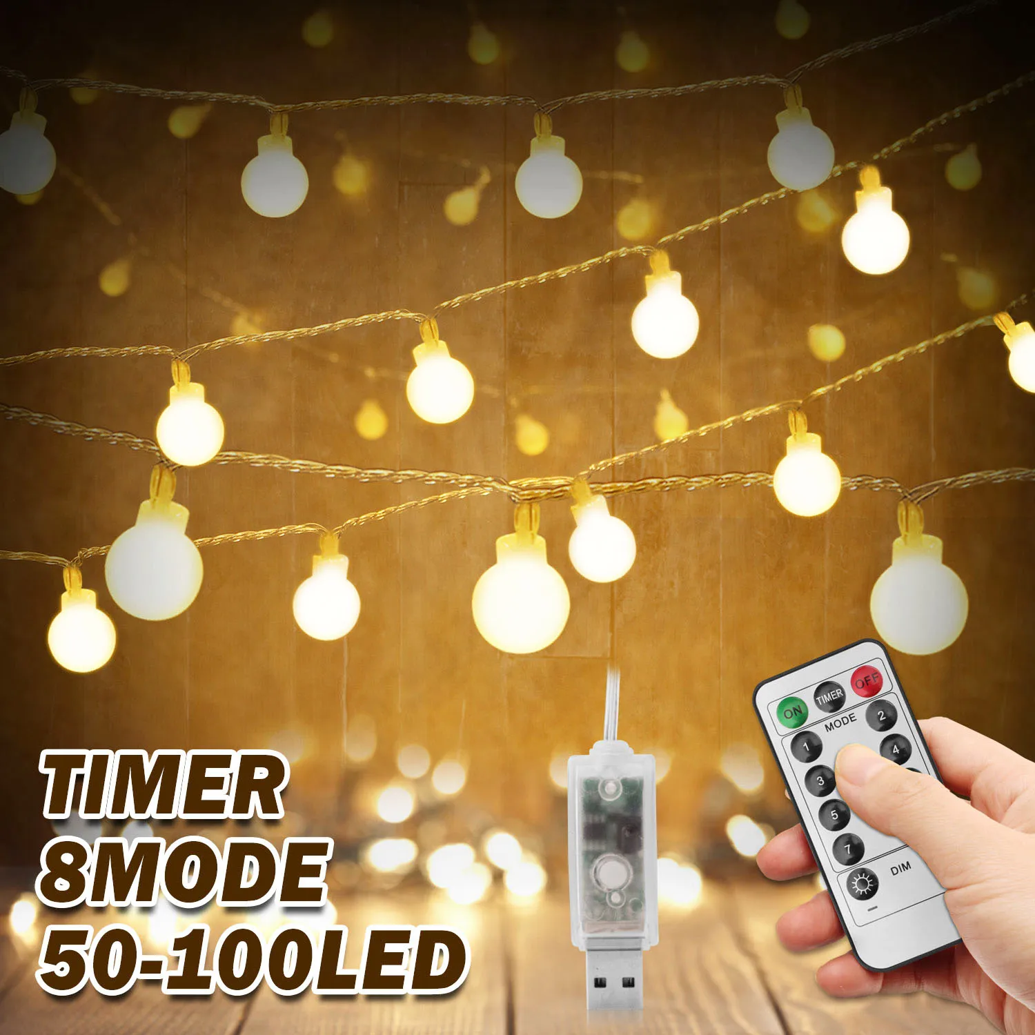Глобус, шар, струнный светильник, гирлянда, светодиодный Сказочный светильник s, 8 режимов, с дистанционным декором, для помещений, для улицы, вечерние, для свадьбы, Рождественская елка, 5 м, 10 м
