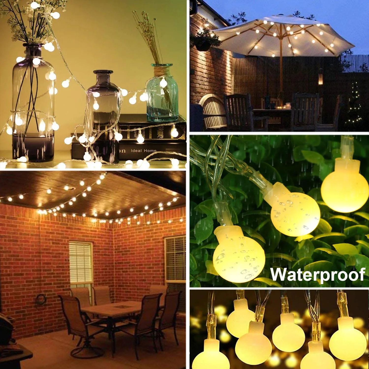 Водонепроницаемый батарея строка светильник длина 33 футов, состоит из 100 прозрачный основного хода шарообразные, Диаметр каждой Глобус 0,7 дюймов и через каждые 4 дюйма