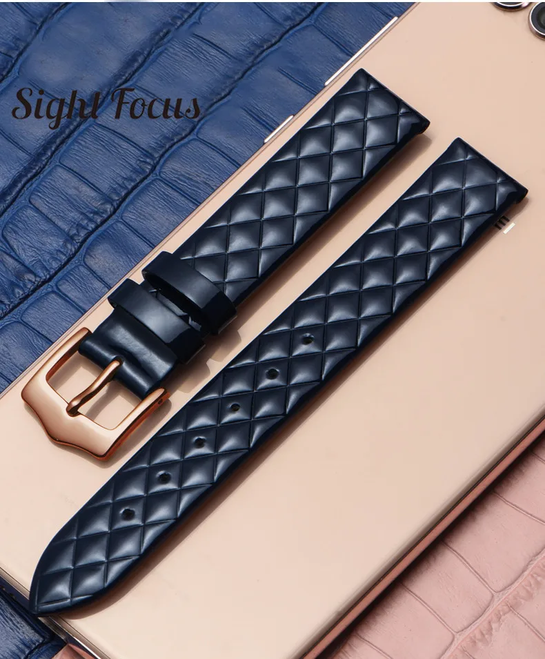 Высококачественный синий кожаный ремешок для часов для мужчин и жен...