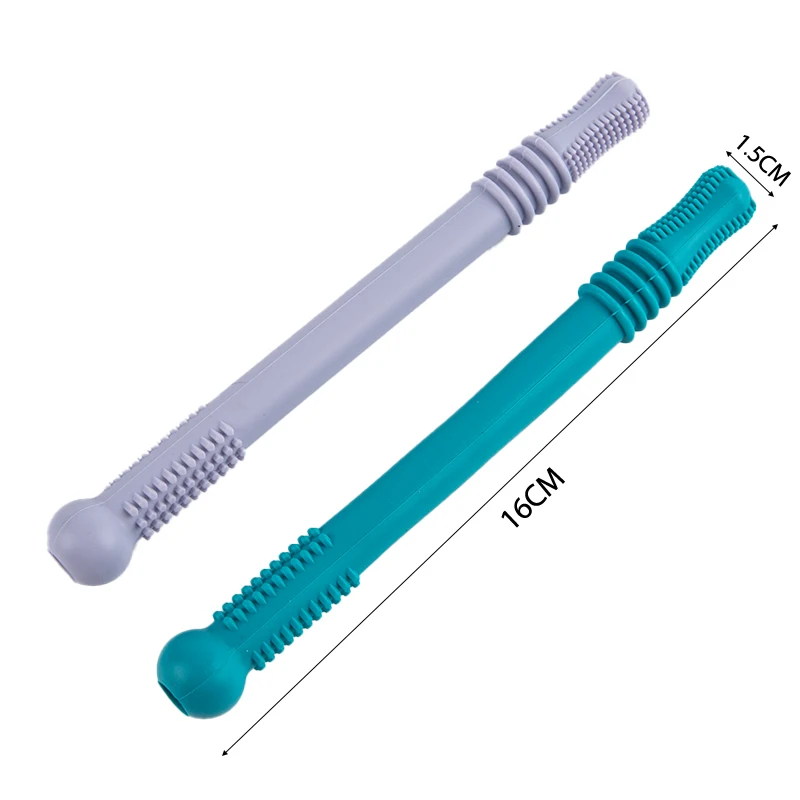 Особенности:Это жевание используется для детей, чтобы помочь при прорезывании зубов, а также используется для снятия стресса для детей с аутизмом.Средняя прочность, легко держать. Это значительно уменьшает беспокойство и стресс, помогает сохранять спокойствие и эффективно останавливает их от жевания рубашек или кусания ногтей.Характеристики:Материал: силиконРазмер: длина: 16 смПосылка включает в себя: 1 шт.