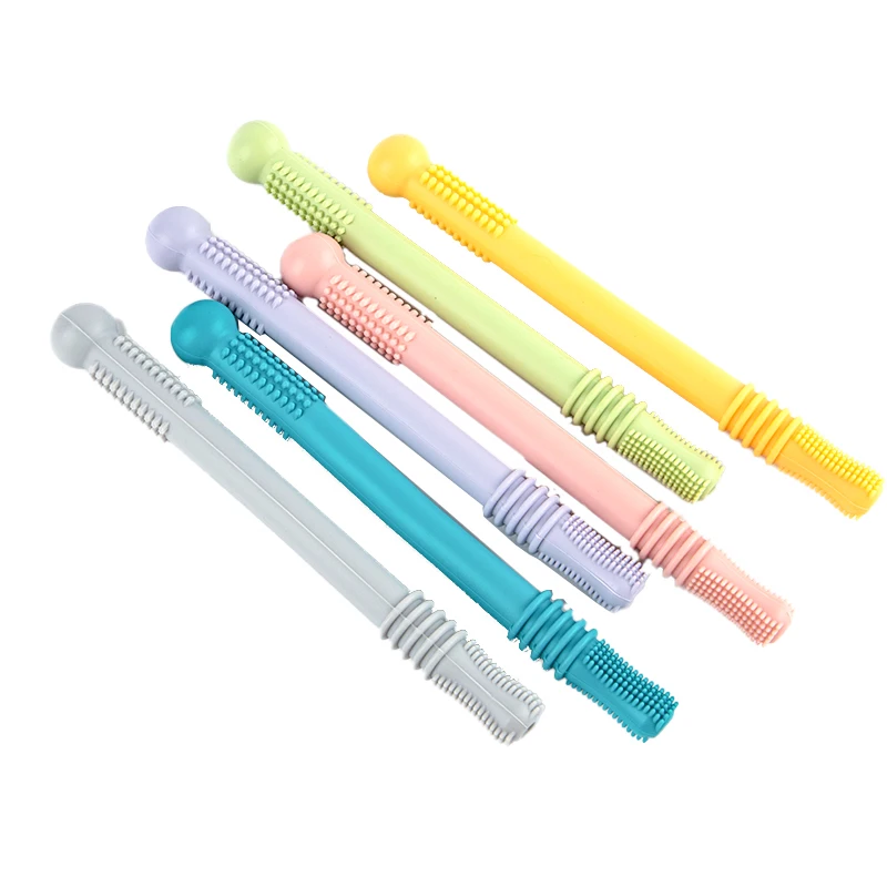 Силиконовая молярная солома, жевательная безопасная игрушка, пищевой класс, без БФА, детские игрушки для прорезывания зубов, товары для мам и малышей
