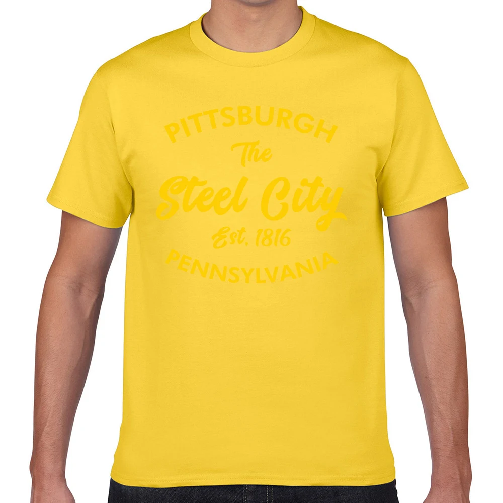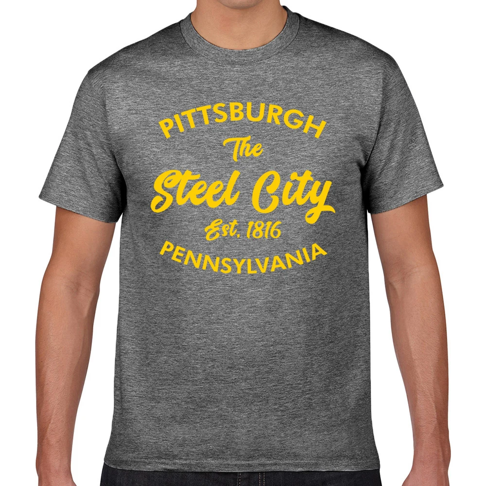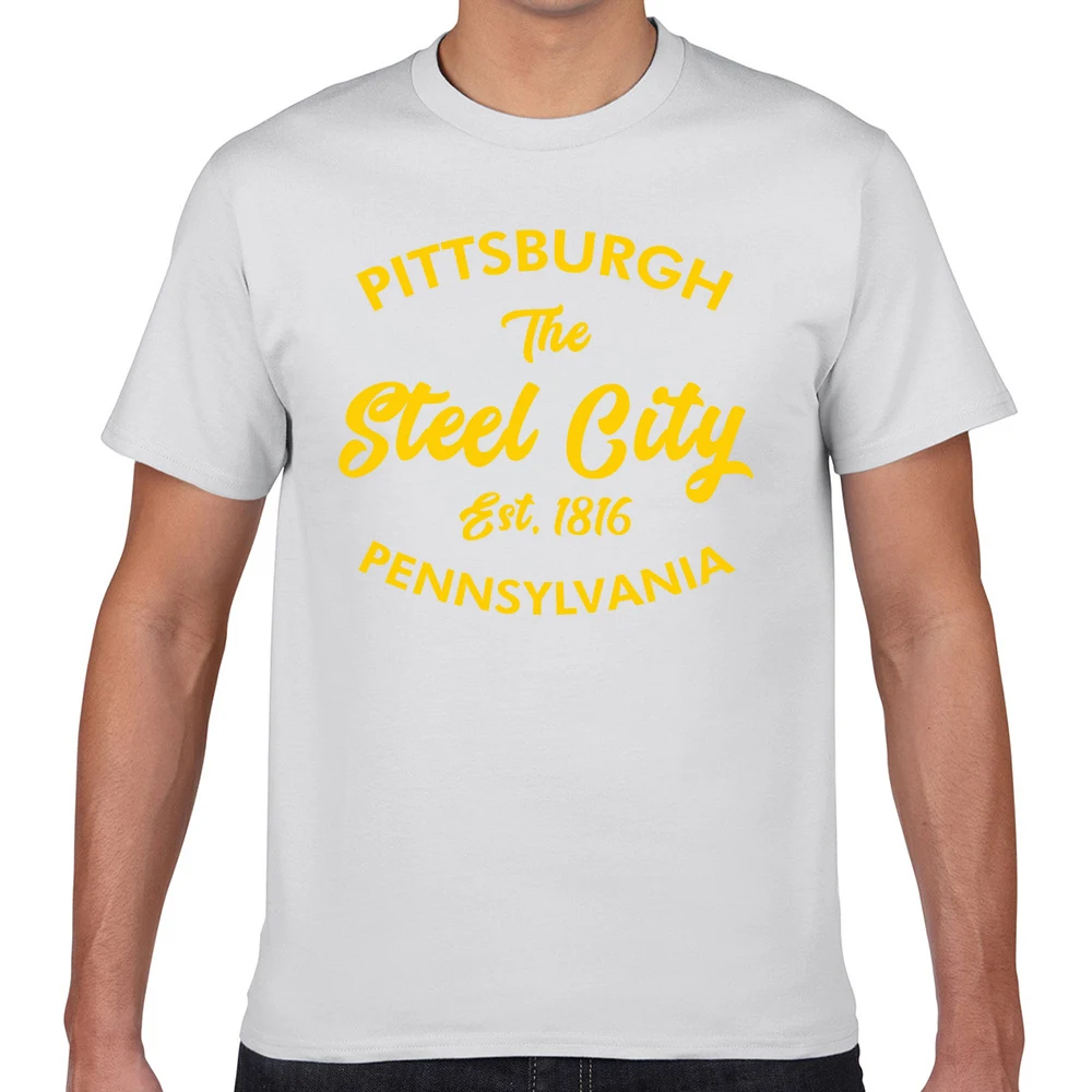 Футболка мужская винтажная из хлопка, топ с изображением Питтсбурга ПА стального города, мода, fa002