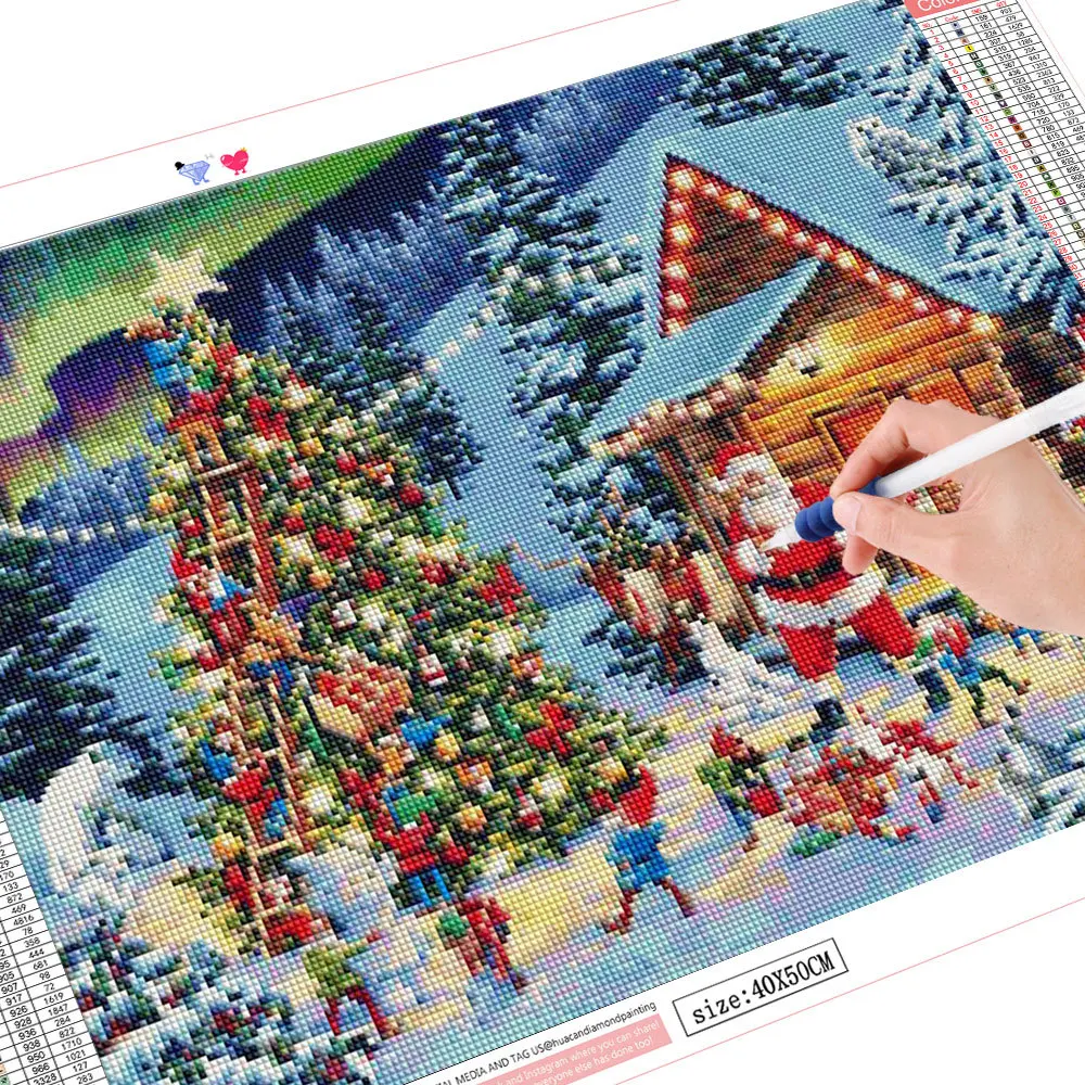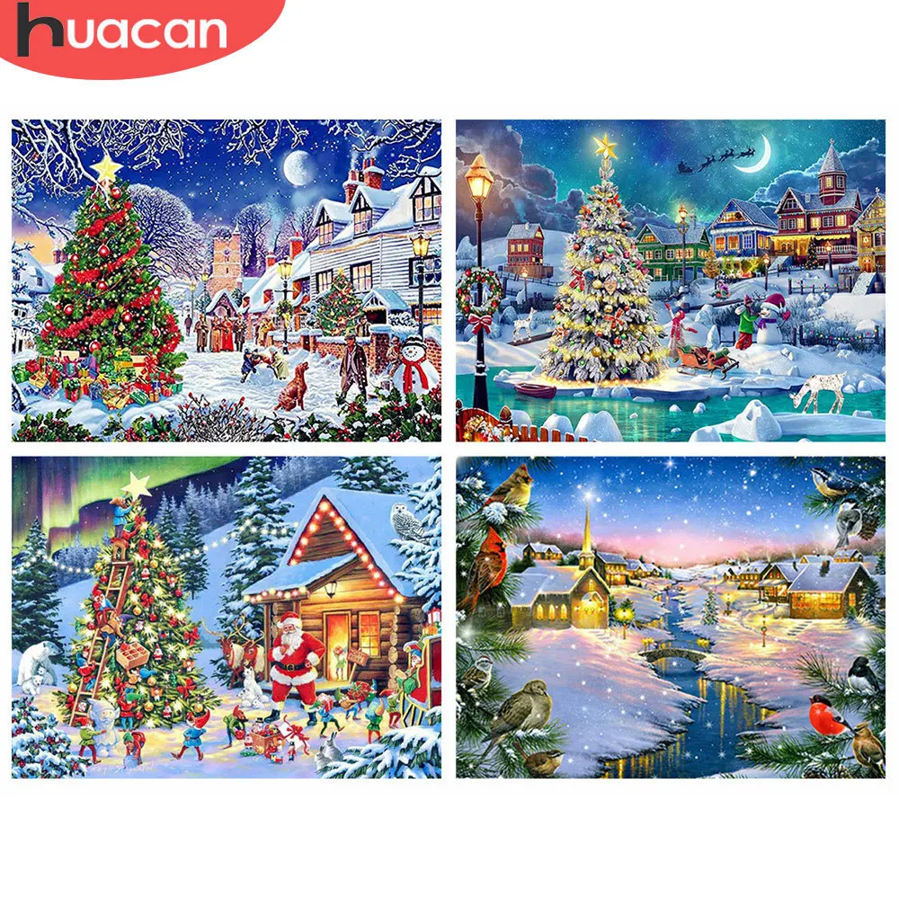 Алмазная вышивка HUACAN 5d бриллиантовый рисунок Рождество Tree DIY, пейзаж, мозаика, домашний декор