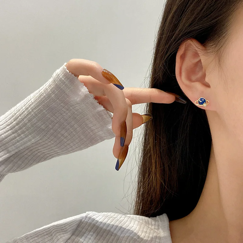 серьги 2021 тренд новинка серьги женские пирсинг обманка jewelry-accessories токийские мстители леди баг и супер кот набор бижютерии серёжки токийские мстители сережки Серьги-гвоздики в виде звезд и Луны, 2021