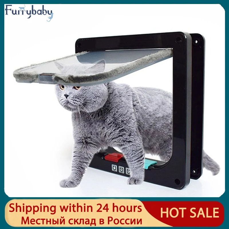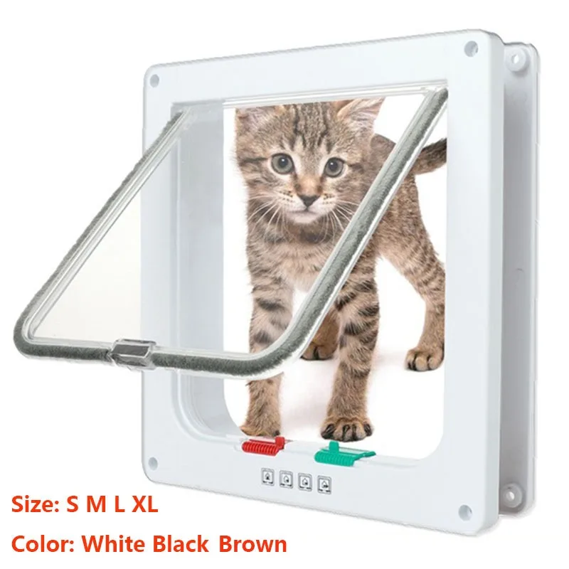 Умная дверь для домашних животных, 4-ходовой замок с замком из АБС-пластика, с откидной крышкой для собак и кошек, аксессуары для маленьких домашних животных