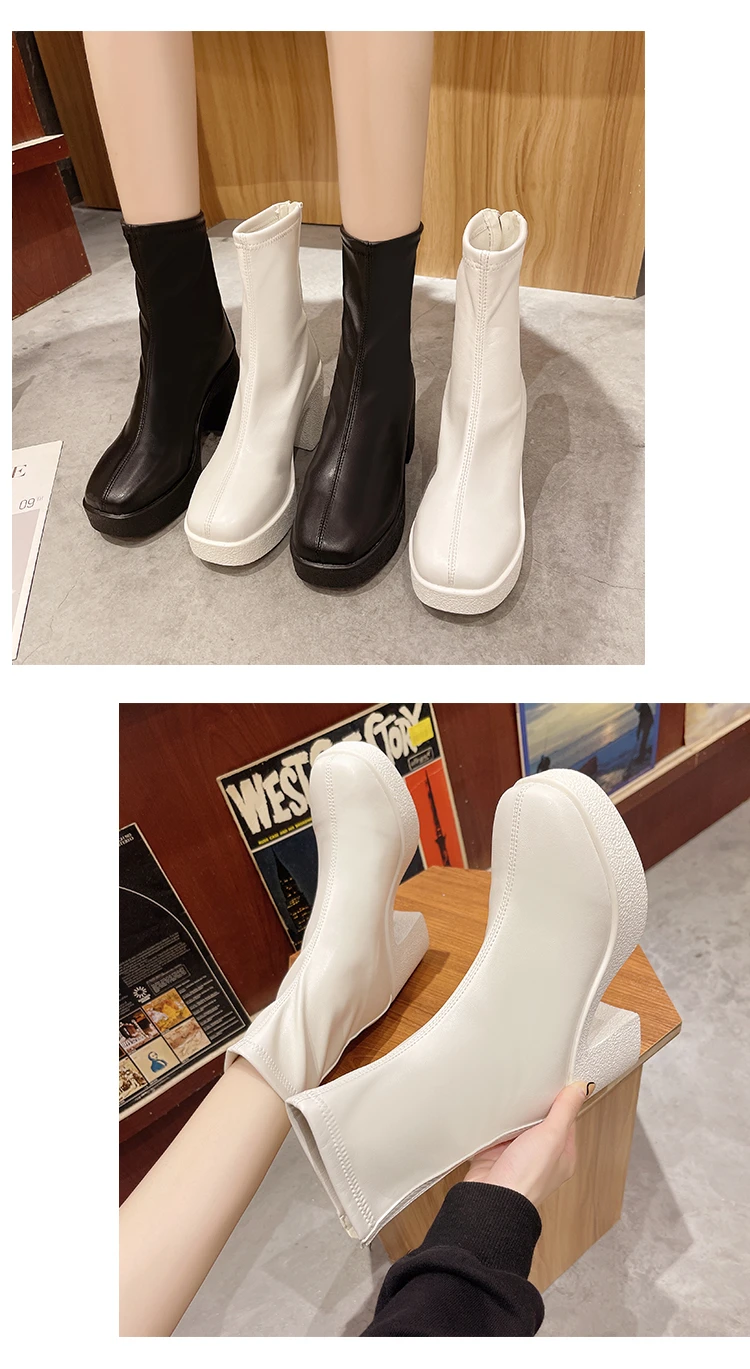 Женские винтажные ботильоны на платформе, однотонные белые ботинки ...
