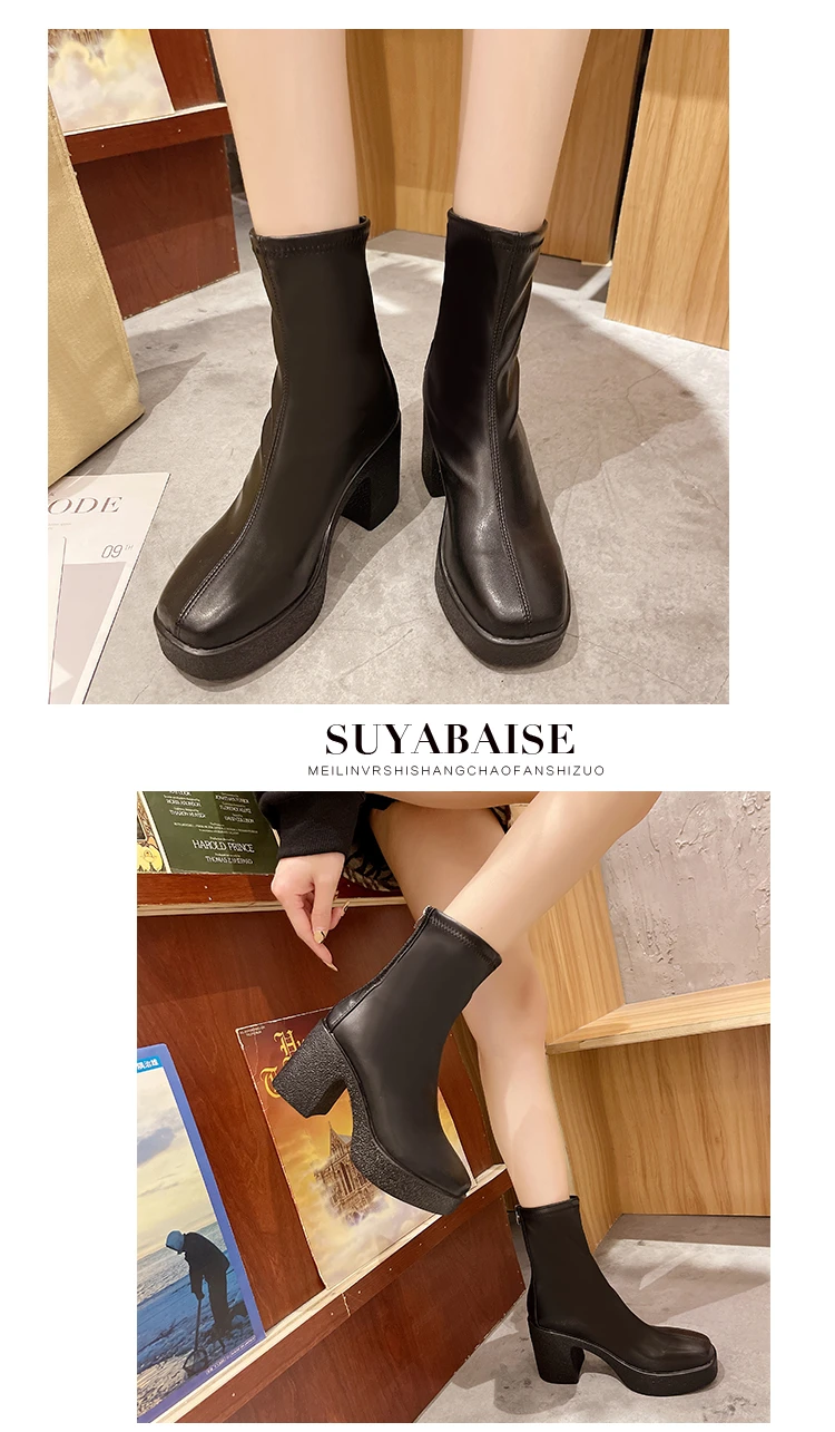 Ботинки на платформе с молнией, обувь из искусственной кожи для сту...