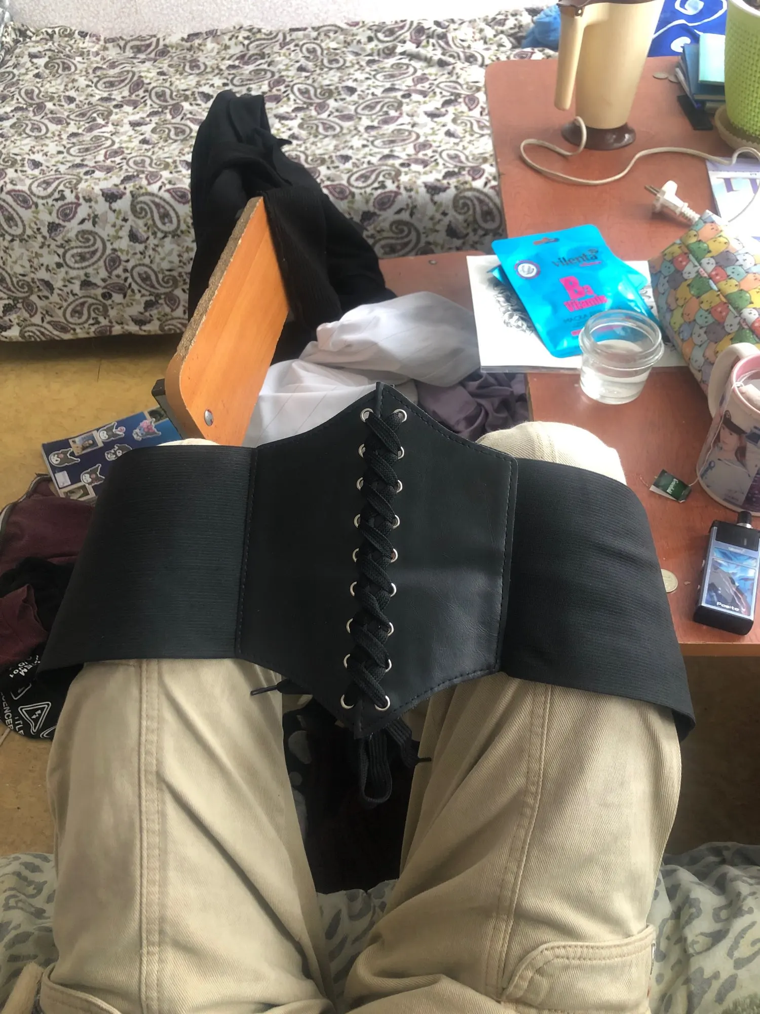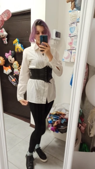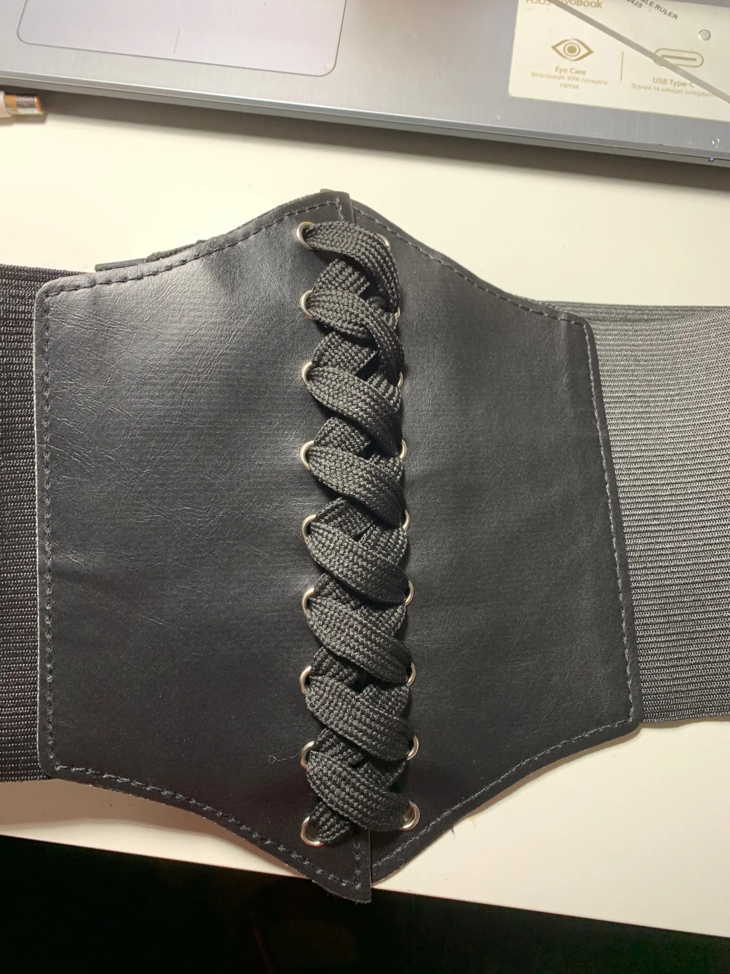 Хороший корсет. Правда шнурки подрапанные. Я не сразу заметила лепешку и думала что всегда надо шнуровать :") Чють большой, жаль что нельзя регулировать размер '^'