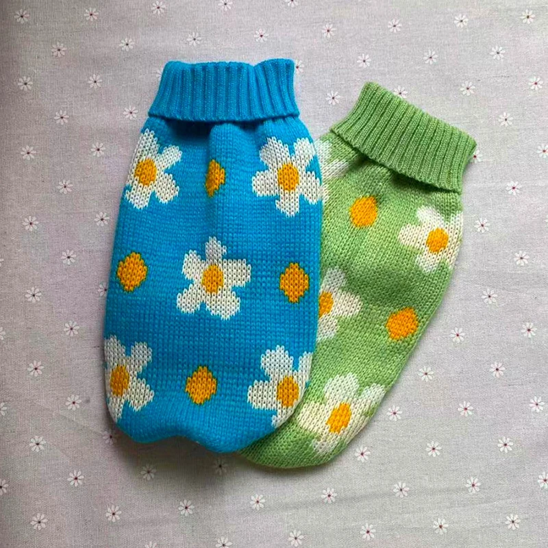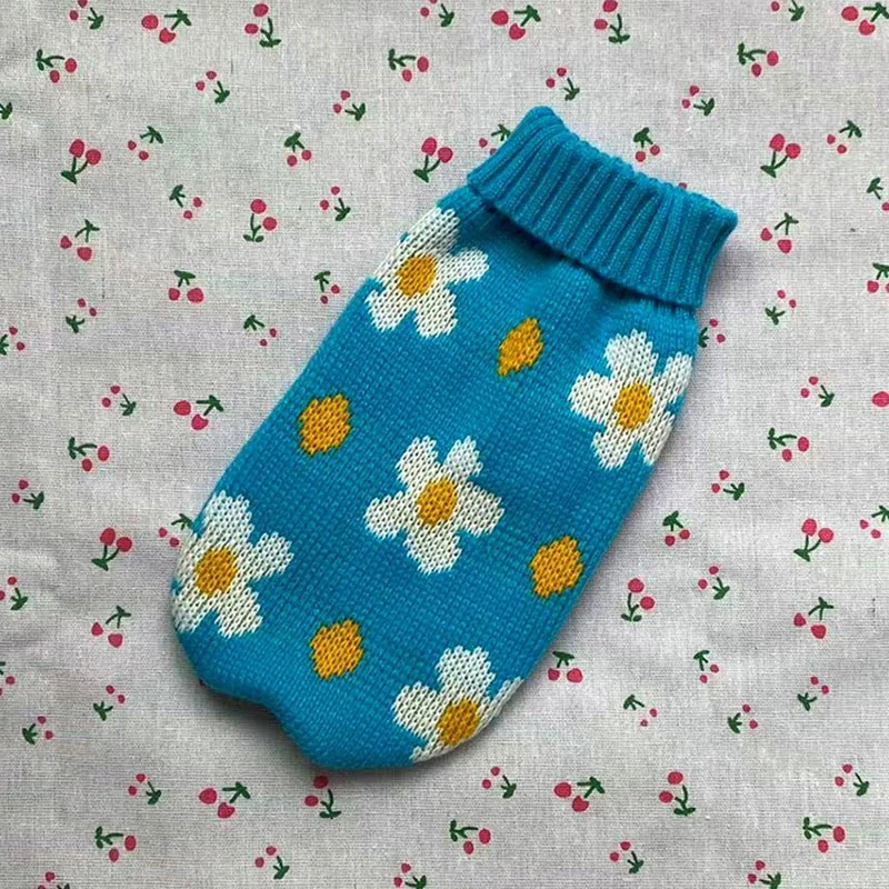 Милая зимняя одежда для собак, милый цветочный Рисунок теплый вязаный свитер для маленьких и средних собак, вязаное крючком пальто для щенка чихуахуа, кошки, одежда для собак
