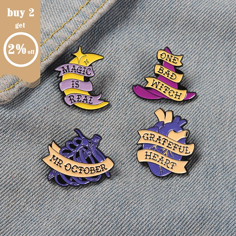 Эмалированные булавки Moon Heart с мультяшным цитатой, брошь ведьмы...