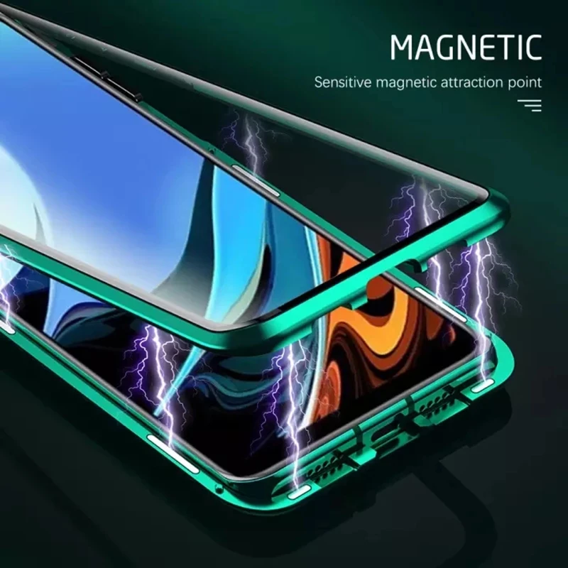 Металлический чехол с магнитной адсорбцией для Xiaomi Redmi Note 10 9 8 7 Pro 9A 8A Mi 11 10 Poco X3NFC F2Pro MI Note10 lite, стеклянный чехол, 360
